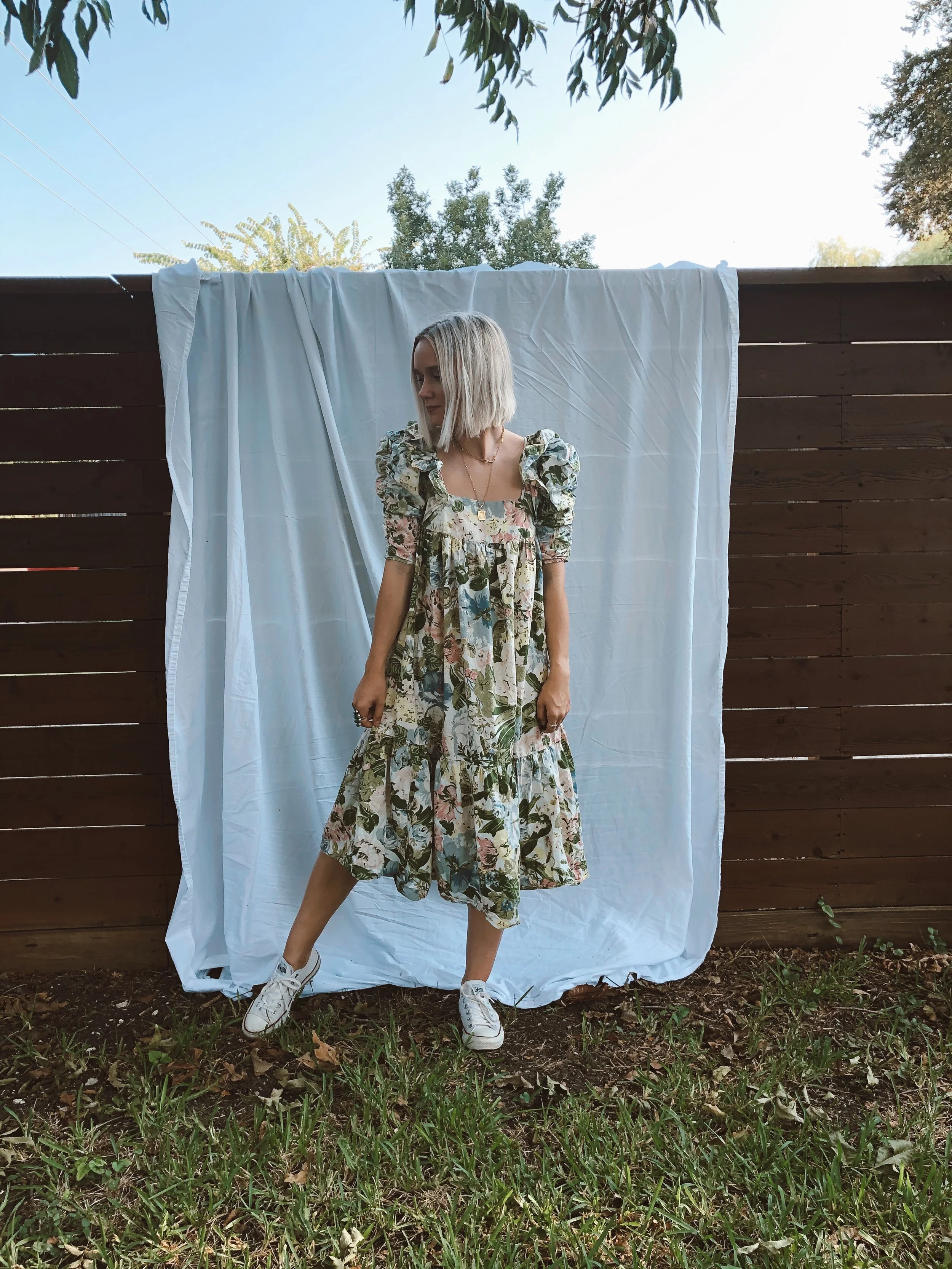 This dress was really fun! I loved the puff sleeves and a fun pattern. It looked very vintage floral which I loved. The square neckline was also so beautiful and on-trend. However, I think the cut of the hem was less flattering on me, so I didn't wear this one as much.